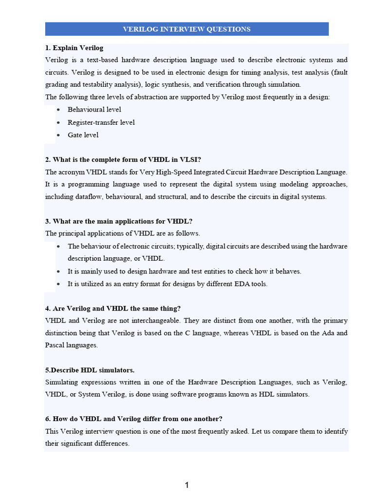 Verilog Interview Questions PDF Hardware Description Language Vhdl